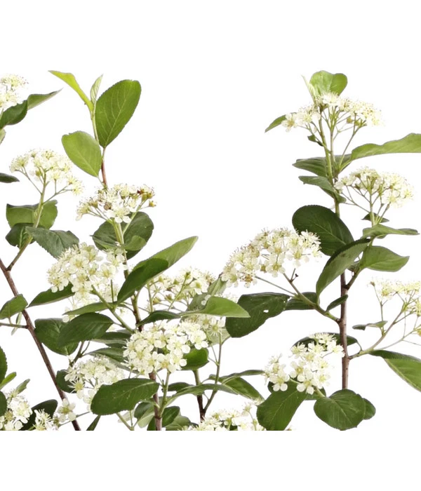 Die Heimat der Aronia, auch Apfelbeere genannt, ist ursprünglich Amerika, der robuste Strauch fühlt sich jedoch auch bei uns sehr wohl. Der Strauch gehört zur Familie der Rosengewächse, was an den hübschen weißen Blüten zu erkennen ist. Doch noch weitere attraktive Merkmale machen das Wildgehölz zu einem absoluten Ziergehölz: neben dem gleichmäßigen aufrechten Wuchs, den dunkelgrünen, glänzenden Blättern schmückt sich die Aronia im Herbst mit einer prachtvollen Laubfärbung in leuchtenden Rot- und Orangetönen. Das Besondere an der Aronia ‚Aron‘ sind jedoch ihre violett-schwarzen Beeren, die in breiten Rispen an dem Strauch hängen. Diese Beeren sind sehr reich an Vitaminen, Mineralstoffen und sekundären Pflanzenstoffen, neben Vitamin A, C, E sind auch besonders viele B-Vitamine in den Aroniabeeren enthalten, zudem Eisen, Kalzium, Magnesium und Zink. Aroniabeeren haben außerdem einen besonders hohen Gehalt an Anthocyanen, das sind Pflanzenfarbstoffe, die besonders gesundheitsfördernd sind. Durch ihr fruchtig-säuerliches Aroma schmecken Aroniabeeren sowohl roh wie auch verarbeitet zu Marmelade oder Saft einfach lecker.