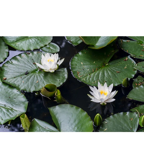 Geben Sie die Seerose ins Wasser, die Blüten und Blätter steigen dann nach oben auf. Am wohlsten fühlt sich die Teichpflanze bei einer Wassertiefe von 50 bis 100 cm. Alle benötigten Nährstoffe zieht sich die Seerose aus dem Wasser und dem Teichboden, eine gesonderte Düngung ist nicht notwendig. Einzig auf einen sonnigen Standort mit mindestens fünf Stunden Sonne täglich sollten Sie Wert legen, damit Ihre Pflanze gut gedeiht. Zur besseren Fixierung der Pflanze eignet sich ein Seerosen-Pflanzkorb. So kann die Teichpflanze auch leicht umgesetzt werden, falls ein anderer Standort gewünscht ist. Wird zusätzlich Teicherde eingesetzt, empfiehlt sich die Verwendung eines robusten Dehner Wasserpflanzentuchs, welches ein Ausschwemmen der Erde verhindert.