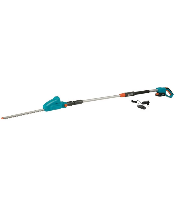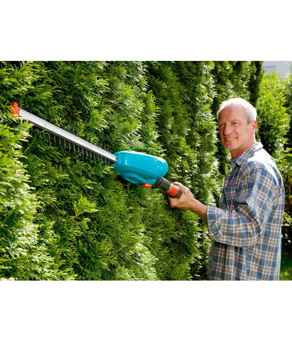 Die GARDENA Akku-Teleskop-Heckenschere THS 42/18V P4A wird im Set inklusive Akku und Ladegerät geliefert, sodass Sie nach dem Aufladevorgang sofort mit der Arbeit beginnen können. Dabei garantiert Ihnen der Akku nicht nur leichtes Handling ohne lästige Kabel, sondern auch den praktischen Einsatz für andere Geräte aus der GARDENA Akku-Serie. Zudem sorgt die intelligente Schwerpunktverteilung am Gerät dafür, dass die Heckenschere gut in der Hand liegt und Ihnen auch komplizierte Schnitte mühelos gelingen. Probieren Sie die Akku-Teleskop-Heckenschere THS 42/18V P4A doch einfach einmal aus – Sie werden vom Schnittergebnis begeistert sein!