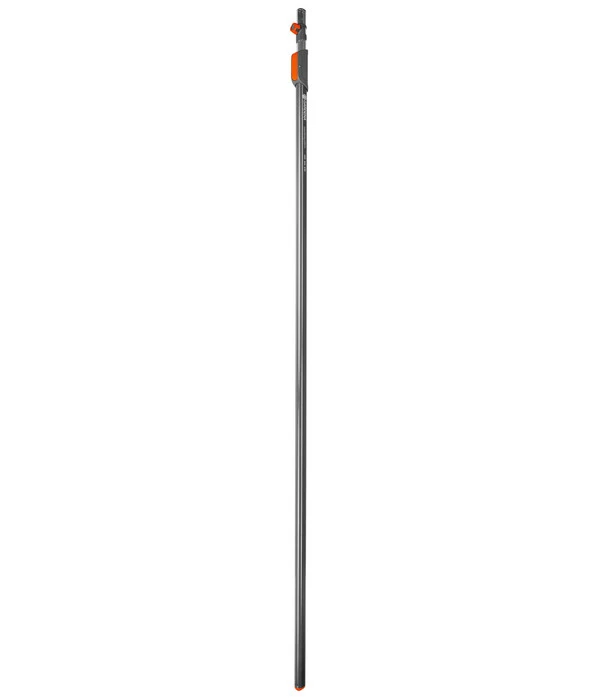 Ob Spinnweben, verschmutzte Außenfassaden, offene Balkenlagen, die Spitzen von Außenpfosten oder Fensterlaibungen sowie höher hängendes Obst – irgendwann kommen Sie in Ihrem Garten sicherlich in die Verlegenheit, weiter hinauf zu müssen, um diese unbequemen Arbeiten zu erledigen. Und zwar weiter, als sie mit bloßen Händen oder einem schlichten Besenstiel reichen können. Wer da nicht auf eine – womöglich wackelige – Leiter steigen möchte oder überhaupt lieber vom Boden aus arbeitet, nutzt am besten und sichersten den GARDENA combisystem-Teleskopstiel, der mit einer Vielzahl der combisystem-Geräte von GARDENA kompatibel ist. Mit einer variablen Länge von 210 bis zu 390 Zentimetern reicht er weit hinauf und Sie können bequem in bis zu 6 Meter Höhe arbeiten. Anschließbar sind sowohl Besen, Schrubber, Fugenkratzer, Harken, Rechen, Sägen, Obstpflücker und vieles andere mehr aus dem breiten Sortiment des GARDENA combisystem-Zubehörs. Der Teleskopstiel verfügt über einen Druckmechanismus für eine einfache Längeneinstellung.