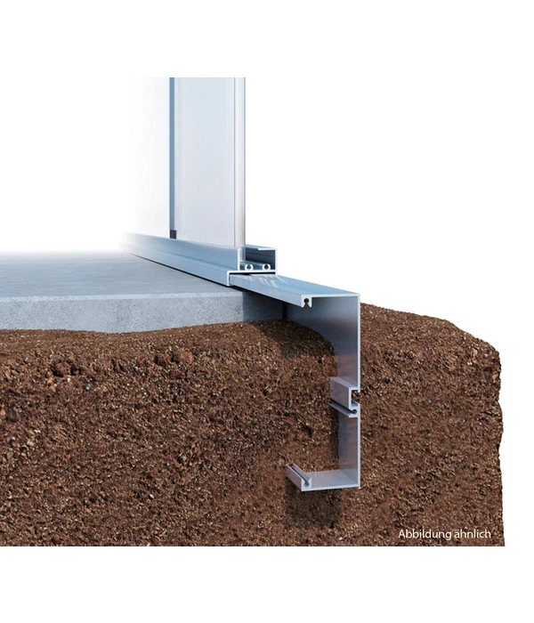 Ihr Gewächshaus sollte nicht einfach auf dem vorhandenen Untergrund errichtete werden – denn dieser kann uneben sein, was die Standfestigkeit des Gewächshauses beeinträchtigen würde. Das Alu-Fundament Linea I ist ein umlaufender Rahmen, der sicher im Erdreich verankert und fest mit dem Gewächshaus verbunden wird. So ist eine optimale Befestigung gewährleistet, die noch über die Sicherheit einer Verschraubung hinausgeht. Das Alu-Fundament Linea I besteht aus hochwertigem Aluminium; der Rahmen ist absolut widerstandsfähig, unverrottbar und kann auch Jahre später rückstandsfrei wieder aus dem Boden genommen werden. Das Alu-Fundament Linea I schließt bündig mit dem Erdreich ab und bildet keinerlei Stolperkanten. Im Lieferumfang enthalten sind neben dem Aluminium-Fundamentrahmen Befestigungslaschen (die die Verbindung zum Gewächshaus darstellen), der Fundamentrahmen-Eckwinkel sowie die benötigten Schrauben und Muttern. So können Sie sicher sein: Das Gewächshaus wird viele Jahre sicher an Ort und Stelle stehen!