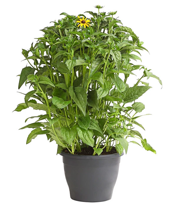 Sie können gar nicht genug Sonne abbekommen? Auch an bewölkten oder regnerischen Tagen lassen diese Sonnen Sie nicht im Stich. Die vielen goldgelben Blüten strahlen zwischen dem tiefgrünen Laub hervor. So können Sie etwa vier Monate lang jeden Tag die Sonne im Garten empfangen. Und schon haben Sie gute Laune, wenn Sie den Sonnenhut ‚Goldsturm‘ erblicken. Die Pflanze wird bis zu 70cm hoch und kann so ideal zwischen anderen Prachtstauden stehen, aber auch vor Hecken oder anderen Großpflanzen punktet ‚Goldsturm‘ mit seiner Schönheit. Die Blüten erinnern an kleine Sonnenblumen, sie sind strahlenförmig und besitzen eine schwarze, gewölbte Mitte. Lassen Sie sich von den hübschen Blüten ein Lächeln ins Gesicht zaubern und das nicht nur im Garten. Die Pflanze eignet sich auch perfekt als Schnittblume und kann so Ihren Sommerstrauß aufpeppen.