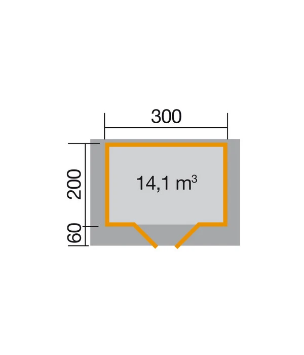 Bemaßung: Firsthöhe 262 cm, Seitenwand 210 cm (ab Oberkante Fundament)
