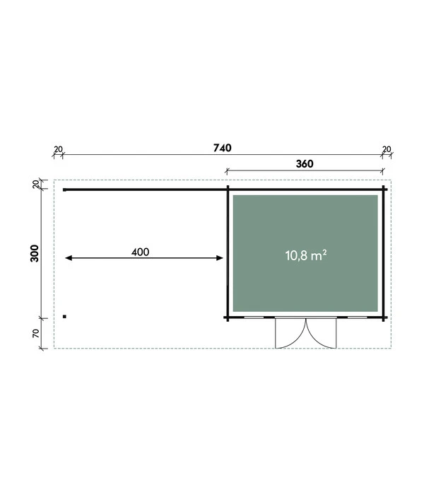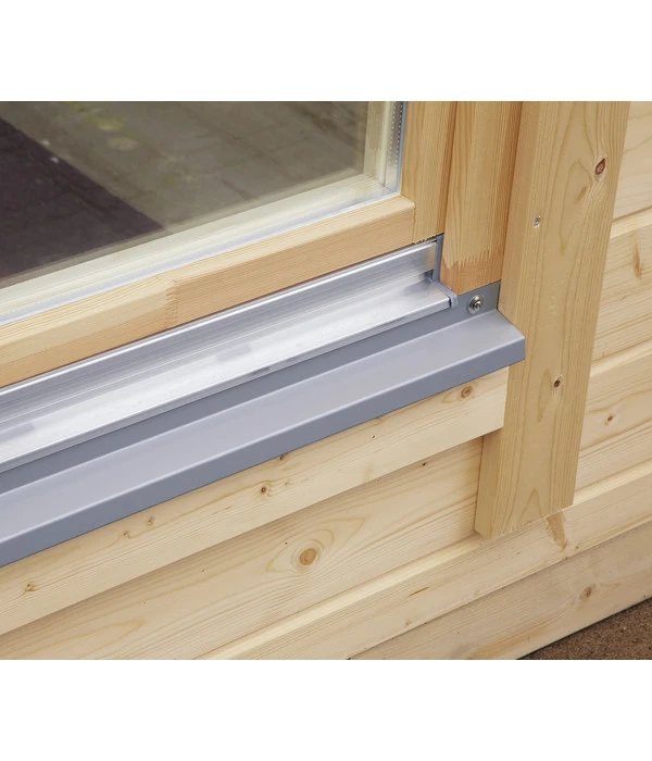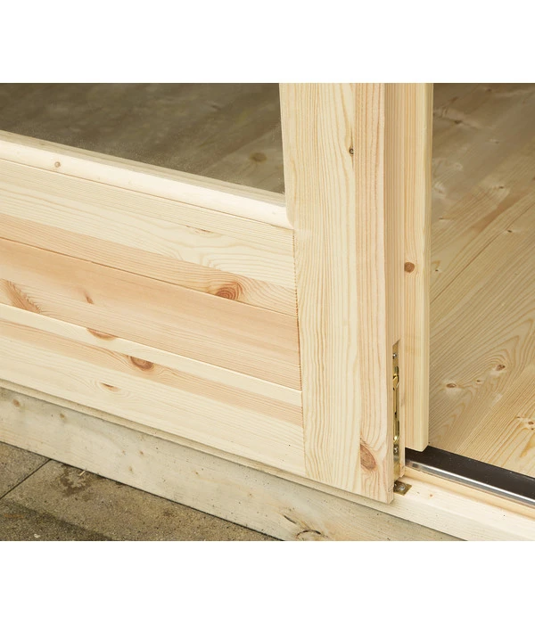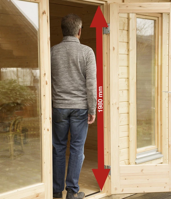 70 mm Wandbohlen, Pultdach, extra hohe Tür, Isolierverglasung